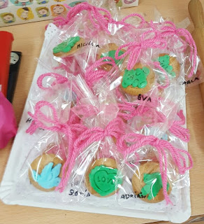 pasta de color y pegamos nuestra elaboración a la galleta. Por último, la metimos